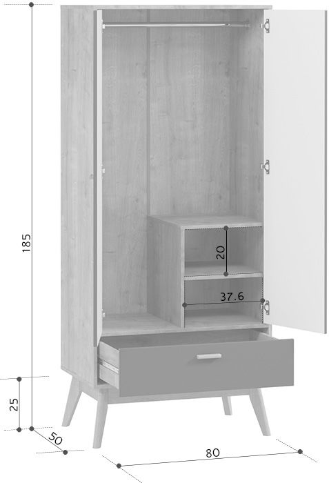 Размеры Ширина 80 см Глубина 50 см Высота 185 см