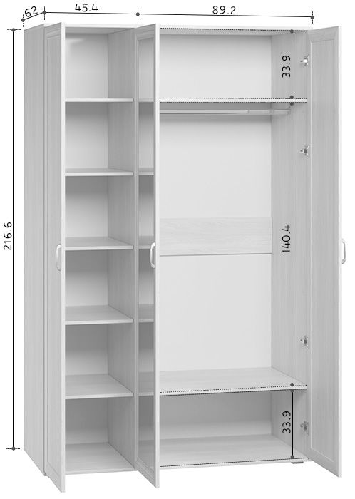 Размеры Ширина 135 см Глубина 62 см Высота 217 см