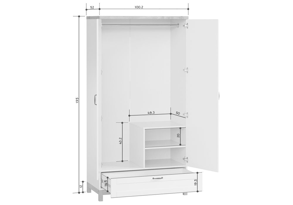 Размеры Ширина 101 см Глубина 52 см Высота 195 см