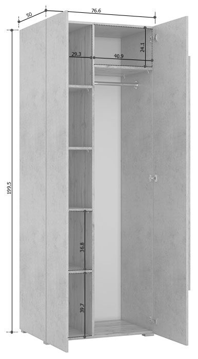 Размеры Ширина 77 см Глубина 50 см Высота 200 см