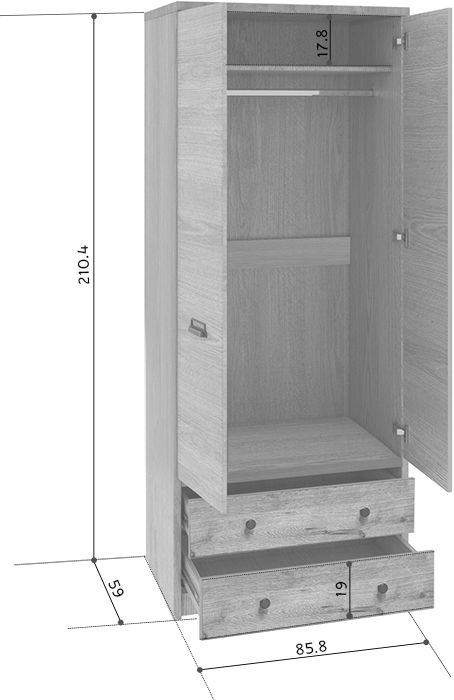 Размеры Ширина 86 см Глубина 59 см Высота 211 см