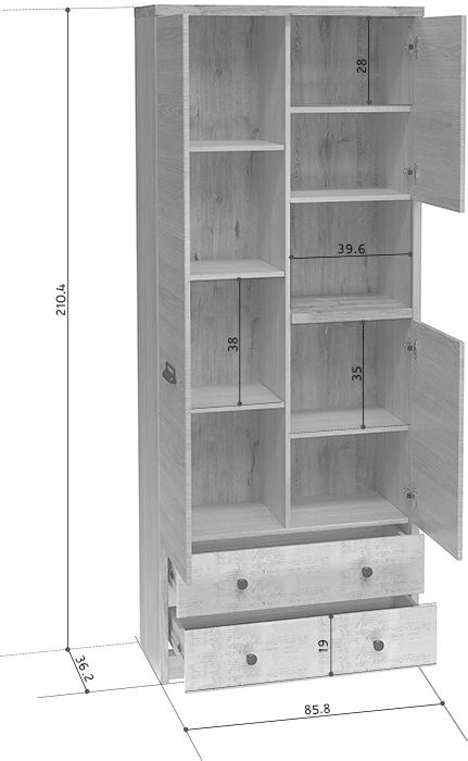 Размеры Ширина 86 см Глубина 37 см Высота 211 см