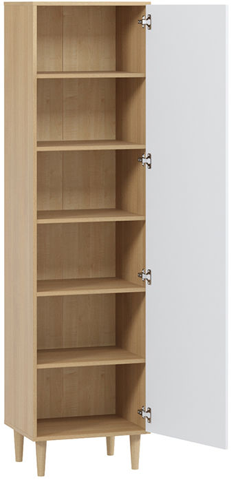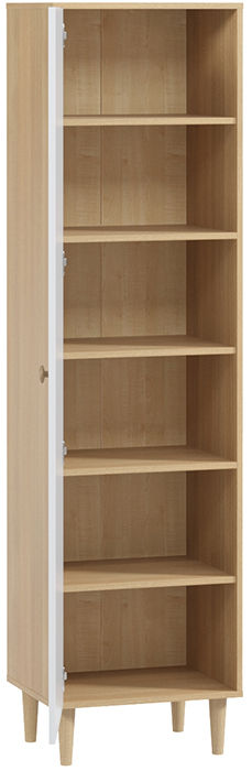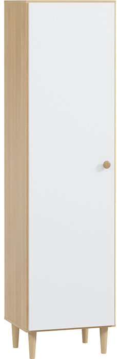 Шкаф Динс небольшой, но вместительный: шесть просторных ниш позволяют организовать хранение вещей. Однотонные фасады, каркас с текстурой натурального дуба, высокие конусные ножки и ручки строгой формы вместе создают гармоничный облик. Шкаф станет функциональным украшением интерьера, его можно использовать как самостоятельно, так и в сочетании с другими предметами серии.