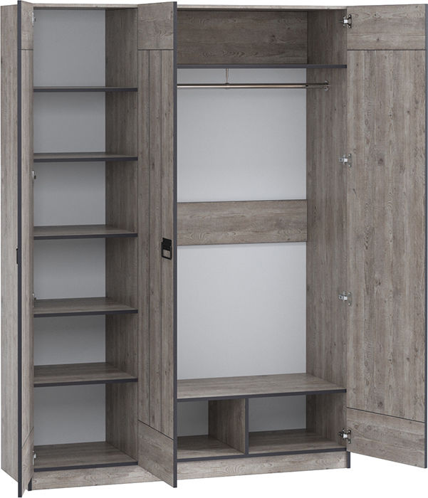 Трехдверный шкаф Эссен практичная модель, которая вместит множество вещей. Конструкция со строгими глухими фасадами украсит любой современный интерьер, а грубые металлические ручки выступят в качестве декора. Использование шкафа в комбинации с другими предметами коллекции Эссен поможет обустроить комнату элегантно и со вкусом!