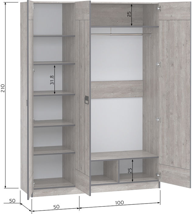 Размеры Ширина 150 см Глубина 50 см Высота 210 см