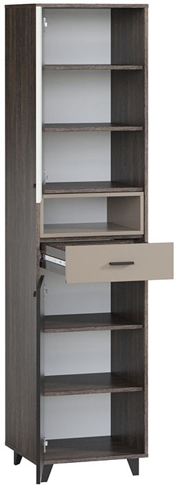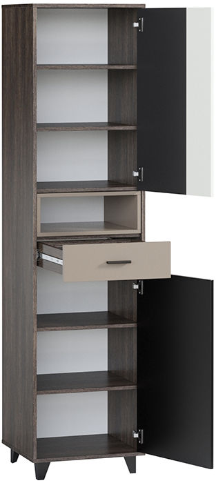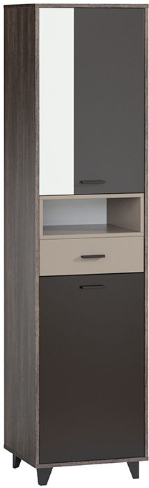 Яркая, динамичная серия Концепт придется по душе активным и современным натурам. Актуальная модульная коллекция подойдет для обстановки гостиной или спальни. Распашной шкаф Концепт-2 отличается компактными габаритными размерами и повышенной функциональностью. Конструкция состоит из трех частей: верхняя и нижняя оснащены глухими дверцами, центральная открытая.