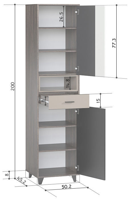 Размеры Ширина 51 см Глубина 46 см Высота 200 см