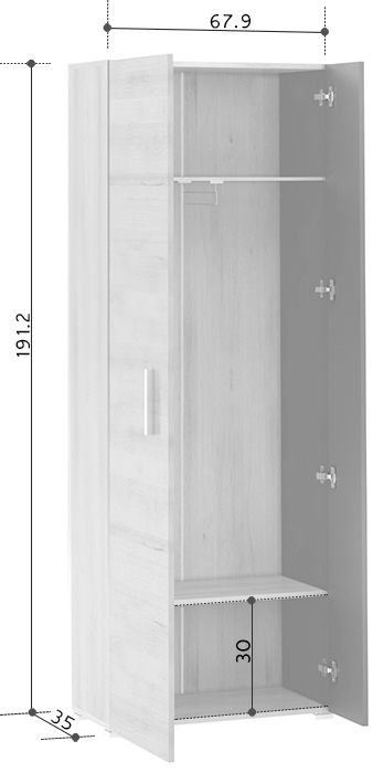 Размеры Ширина 68 см Глубина 35 см Высота 192 см
