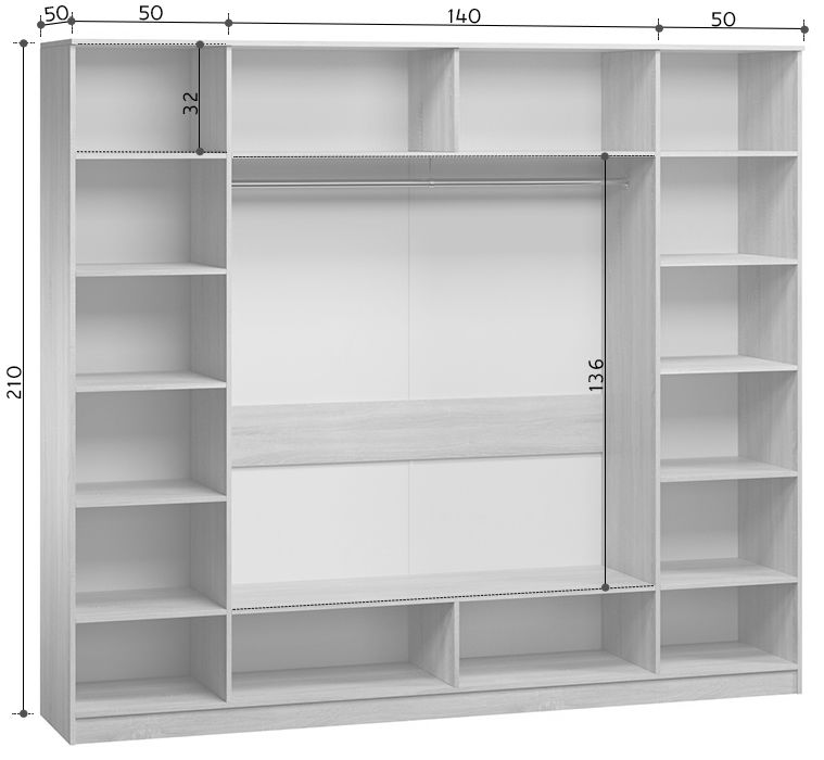 Размеры Ширина 240 см Глубина 50 см Высота 210 см