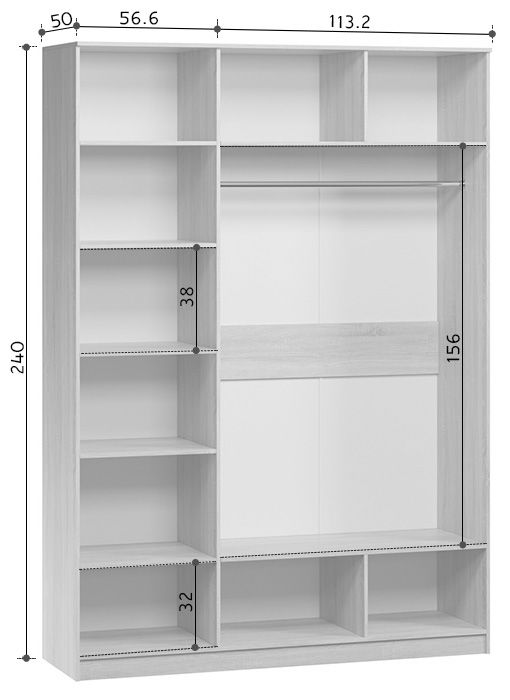 Размеры Ширина 170 см Глубина 50 см Высота 240 см