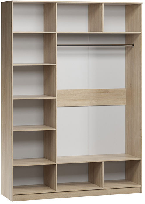 Трехдверный шкаф Лайт-3 образец современного минимализма, станет функциональным дополнением к предметам из одноименной серии. Строгие фасады с древесной текстурой отлично сочетаются с темным оттенком корпуса. Стандартное комбинированное наполнение систематизирует хранение гардероба: от одежды и обуви до постельных принадлежностей и аксессуаров.