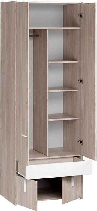 Двустворчатый шкаф Джойс-1 самобытный предмет интерьера без архитектурных излишеств. Оптимальные габариты и продуманное внутреннее наполнение позволяют разместить в нем всю одежду, обувь и аксессуары.