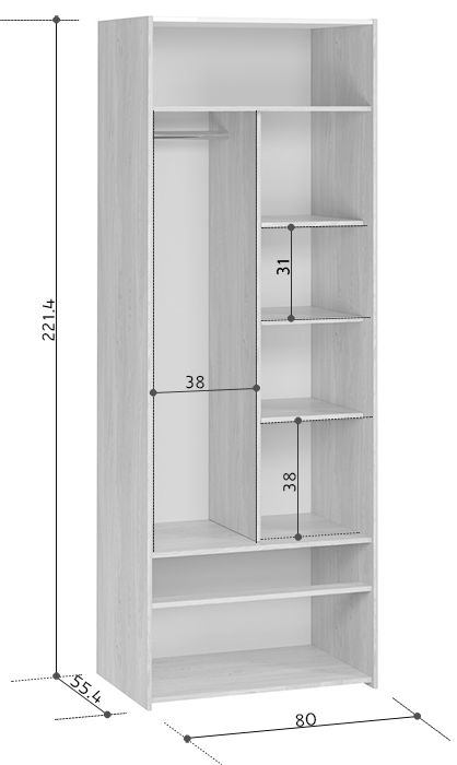 Размеры Ширина 80 см Глубина 56 см Высота 222 см