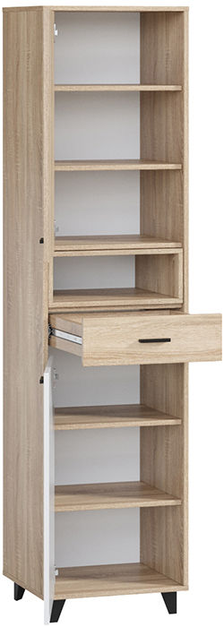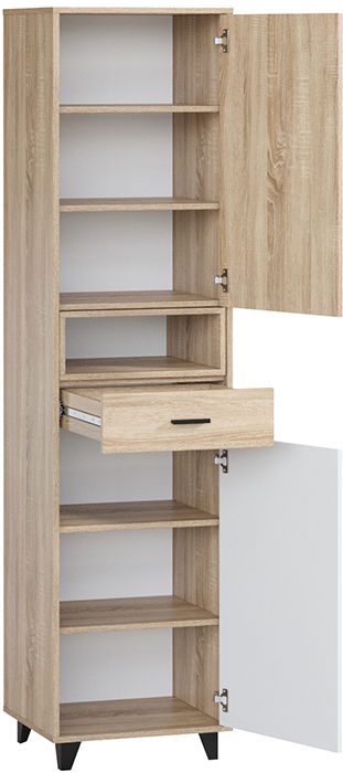 Яркая, динамичная серия Концепт придется по душе активным и современным натурам. Актуальная модульная коллекция подойдет для обстановки гостиной или спальни. Распашной шкаф Концепт-2 отличается компактными габаритными размерами и повышенной функциональностью. Конструкция состоит из трех частей: верхняя и нижняя оснащены глухими дверцами, центральная открытая.