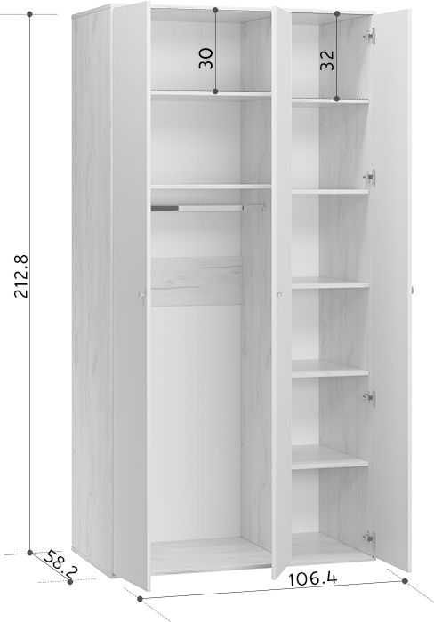 Размеры Ширина 107 см Глубина 59 см Высота 213 см