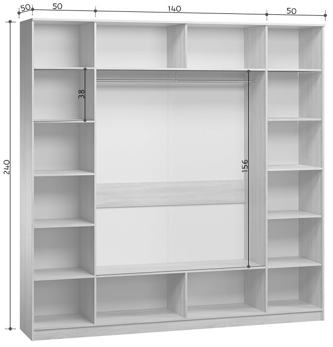 Размеры Ширина 240 см Глубина 50 см Высота 240 см