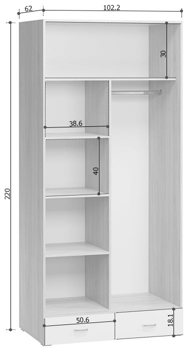 Размеры Ширина 103 см Глубина 62 см Высота 220 см