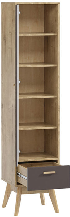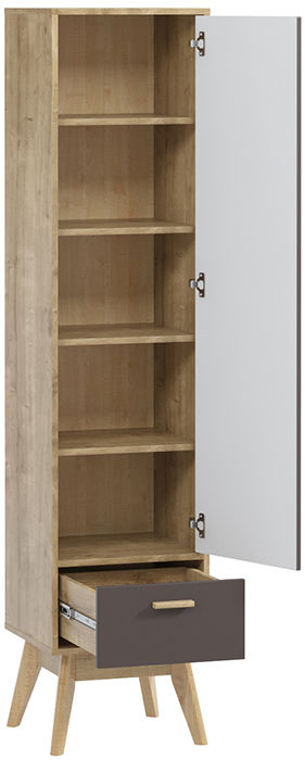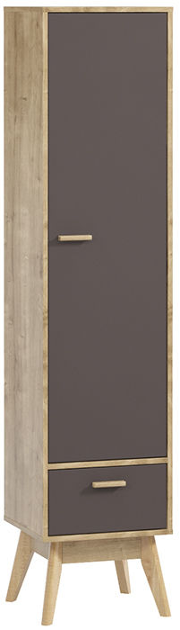 Шкаф Нордик сочетает в себе продуманную конструкцию и современный дизайн. Благодаря отсутствию сложных элементов и простой прямоугольной форме шкаф выглядит стройным, а высокие ножки выгодно дополняют образ.