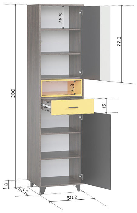 Размеры Ширина 51 см Глубина 46 см Высота 200 см