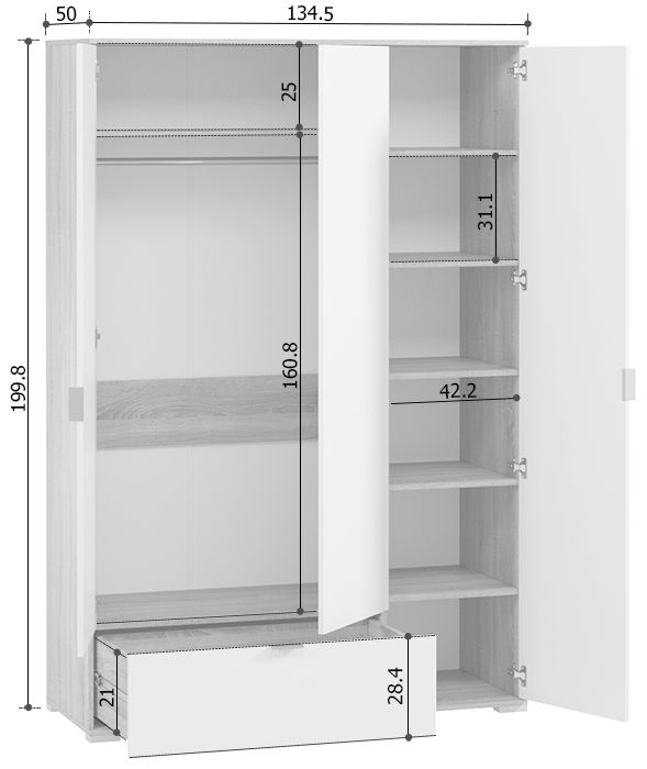 Размеры Ширина 135 см Глубина 50 см Высота 200 см