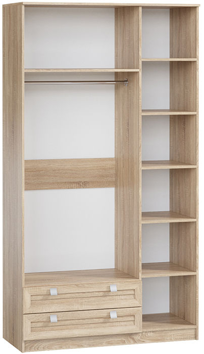 Распашной шкаф классическое решение для хранения одежды и личных вещей. Надежность и простота конструкции гарантируют долгий срок службы, а грамотное внутреннее наполнение вместительность и легкий доступ к содержимому. Современный дизайн корпуса и фасадов позволят легко разместить модель в интерьере любой комнаты: гостиной, спальни, прихожей и даже офиса.