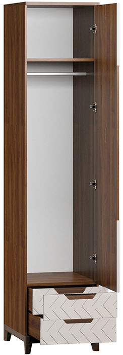 Вместительный одностворчатый шкаф Сканди поможет организовать удобное хранение одежды и аксессуаров. Изделие без конструктивных излишеств функционально дополнит пространство спальни, прихожей или офиса.