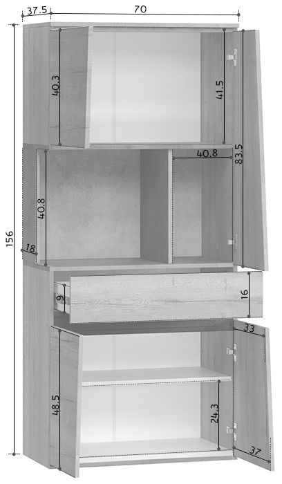Размеры Ширина 70 см Глубина 38 см Высота 156 см