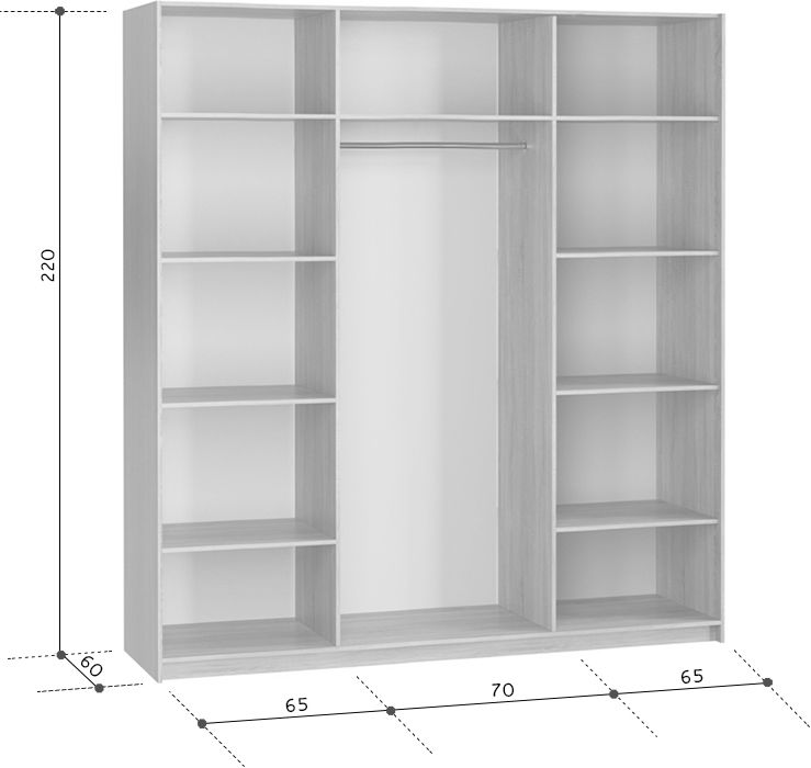 Размеры Ширина 200 см Глубина 60 см Высота 220 см