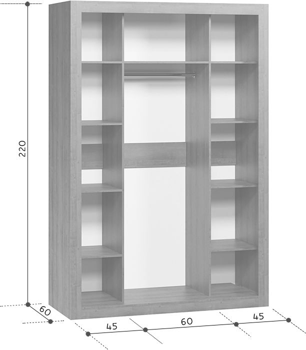 Размеры Ширина 150 см Глубина 60 см Высота 220 см