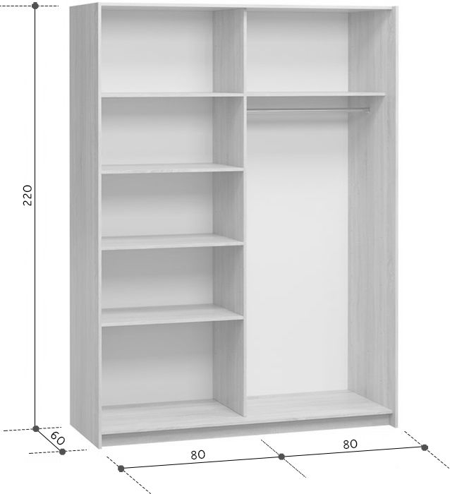 Размеры Ширина 160 см Глубина 60 см Высота 220 см