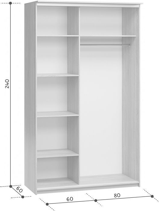 Размеры Ширина 140 см Глубина 60 см Высота 240 см