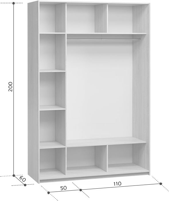 Размеры Ширина 160 см Глубина 60 см Высота 200 см