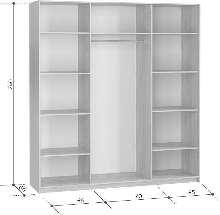 Размеры Ширина 200 см Глубина 60 см Высота 240 см