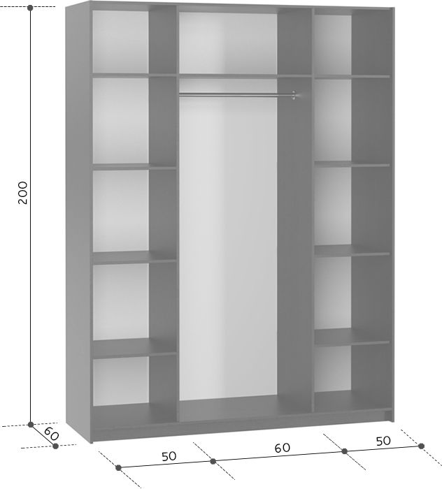 Размеры Ширина 160 см Глубина 60 см Высота 200 см