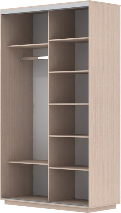 Шкаф-купе Орлеан это вместительная система для хранения одежды, обуви, предметов гардероба и других, самых разных вещей. Массивное основание с текстурой дерева и большие зеркальные фасады станут прекрасным дополнением любого интерьера. За дверцами вас ждет продуманное внутреннее наполнение: глубокие полки и отдельный отсек со штангой для вешалок.