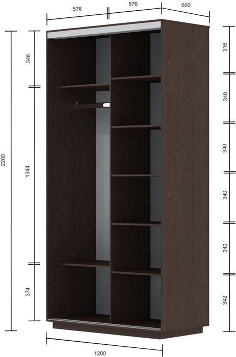 Размеры Ширина 120 см Глубина 60 см Высота 220 см