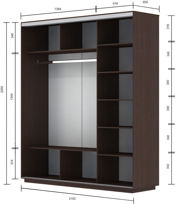 Размеры Ширина 210 см Глубина 60 см Высота 220 см