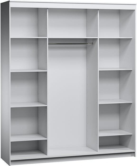 Шкаф-купе Пикассо вместительная система хранения с продуманным внутренним наполнением. Традиционный отсек со штангой для одежды на вешалках дополнен двумя пеналами с полками с левой и правой стороны. Матовый белый оттенок корпуса и фасадов органично впишет шкаф в современный интерьер. А наличие ленты-щетки предотвратит попадание пыли внутрь шкафа и обеспечит бесшумное открывание и закрывание створок (данный элемент в базовую комплектацию изделия не входит и приобретается отдельно).