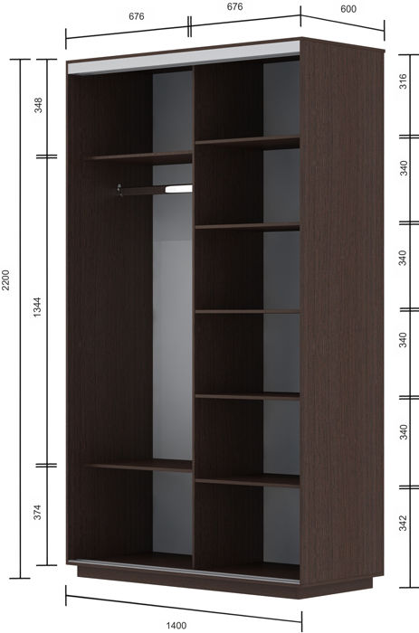 Размеры Ширина 140 см Глубина 60 см Высота 220 см