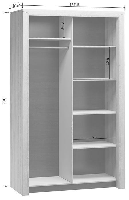 Размеры Ширина 138 см Глубина 62 см Высота 230 см