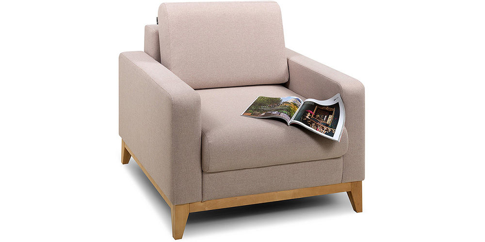 Большое удобное кресло комфорт-класса станет любимым местом отдыха в кругу семьи и друзей. Модель полностью выдержана в скандинавской эстетике: лаконичные формы, геометричные линии, использование натуральной древесины. Гармоничное дополнение к дивану одноименной серии.