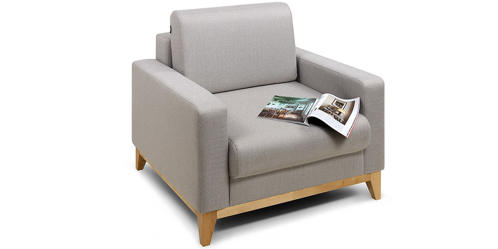 Большое удобное кресло комфорт-класса станет любимым местом отдыха в кругу семьи и друзей. Модель полностью выдержана в скандинавской эстетике: лаконичные формы, геометричные линии, использование натуральной древесины. Гармоничное дополнение к дивану одноименной серии.