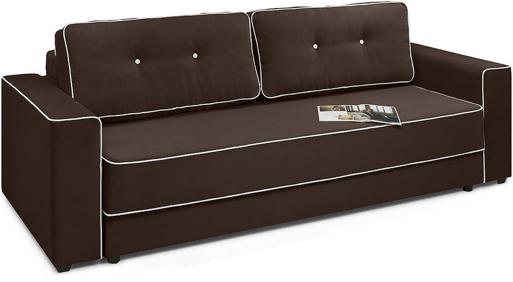 Диван Менли это харизматичный облик и незаурядная функциональность. Основательные габариты и стильный контурный кант добавят индивидуальности любому интерьеру. Широкое сиденье, мягкие приспинные подушки, бархатистый материал обивки что еще нужно для комфортного отдыха? Спереди установлены ролики для более комфортного раскладывания дивана и сохранения напольного покрытия.