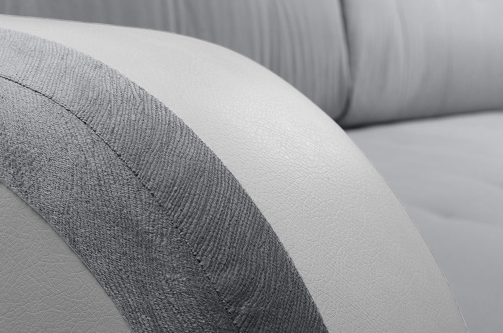 Модель Генри выделяется из нашей коллекции мягкой мебели оригинальным футуристичным дизайном. Лаконичные четкие линии, строгие формы, комбинация экокожи и ткани, придающая воздушность и легкость облику, позволяют вписать диван в интерьеры самых разных стилей: минимализм, хай-тек, модерн, неоклассика.