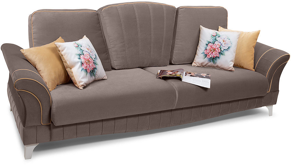 Классический диван Монро достойное сочетание многофункциональности, удобства и роскошного дизайна. Широкое упругое сиденье, усиленное пружинной змейкой, и высокие съемные подушки-спинки позволят с комфортом устроиться на диване большой семье или компании друзей. А при необходимости вам достаточно сделать всего пару движений, чтобы диван стал просторным спальным местом.
