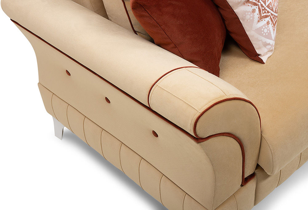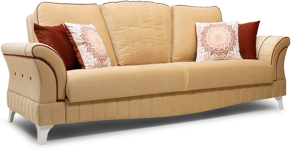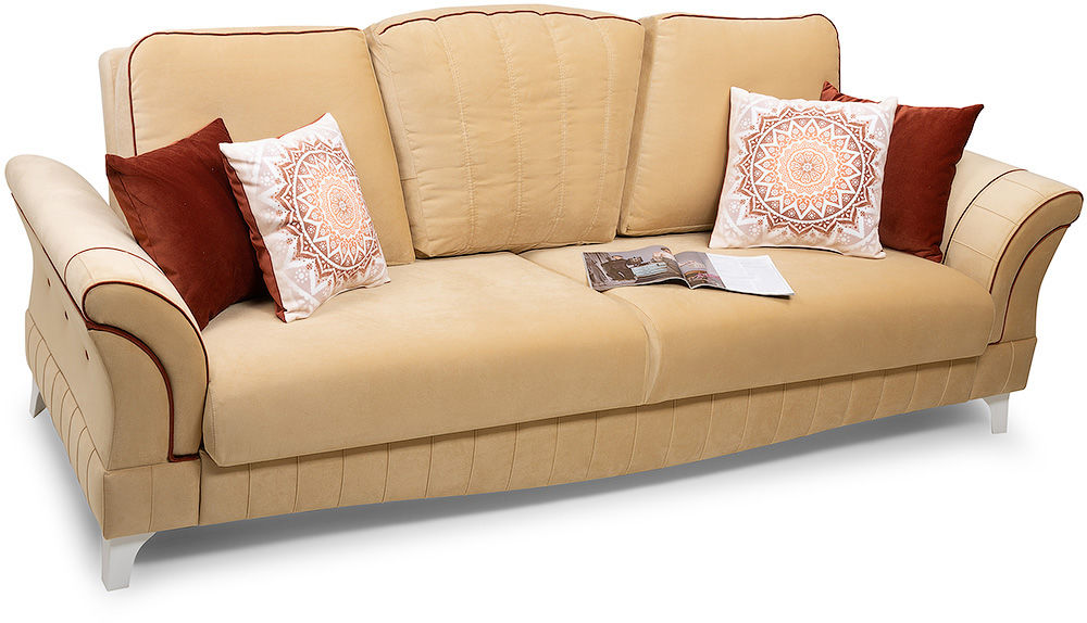 Классический диван Монро достойное сочетание многофункциональности, удобства и роскошного дизайна. Широкое упругое сиденье, усиленное пружинной змейкой, и высокие съемные подушки-спинки позволят с комфортом устроиться на диване большой семье или компании друзей. А при необходимости вам достаточно сделать всего пару движений, чтобы диван стал просторным спальным местом.