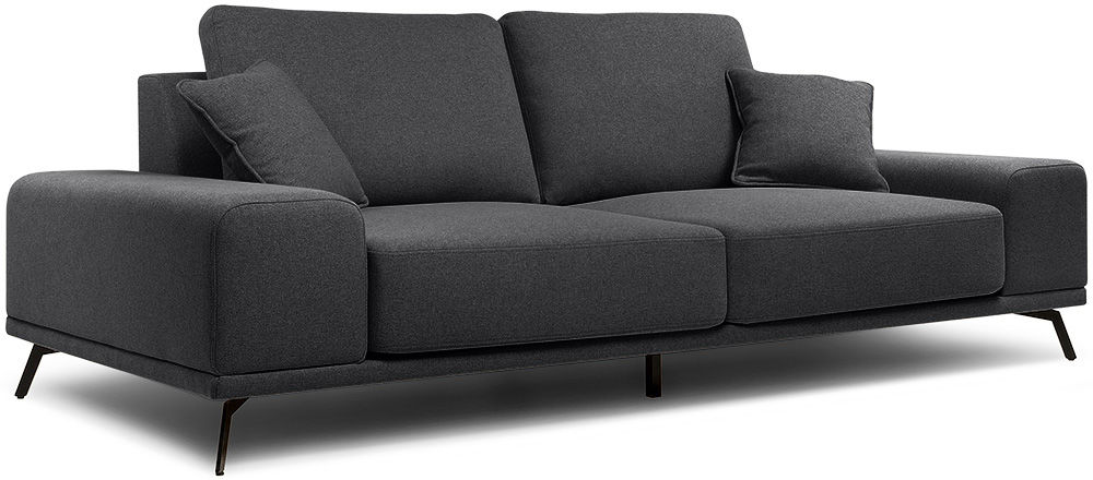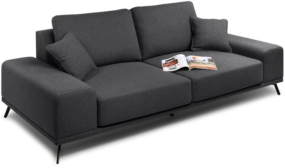 Стильный мягкий диван Рон с глубокой посадкой выступит в роли базового элемента гостиной или лаундж зоны около домашнего кинотеатра. На просторном глубоком сиденьи с широкими массивными подлокотниками комфортно разместится большая семья или компания друзей.