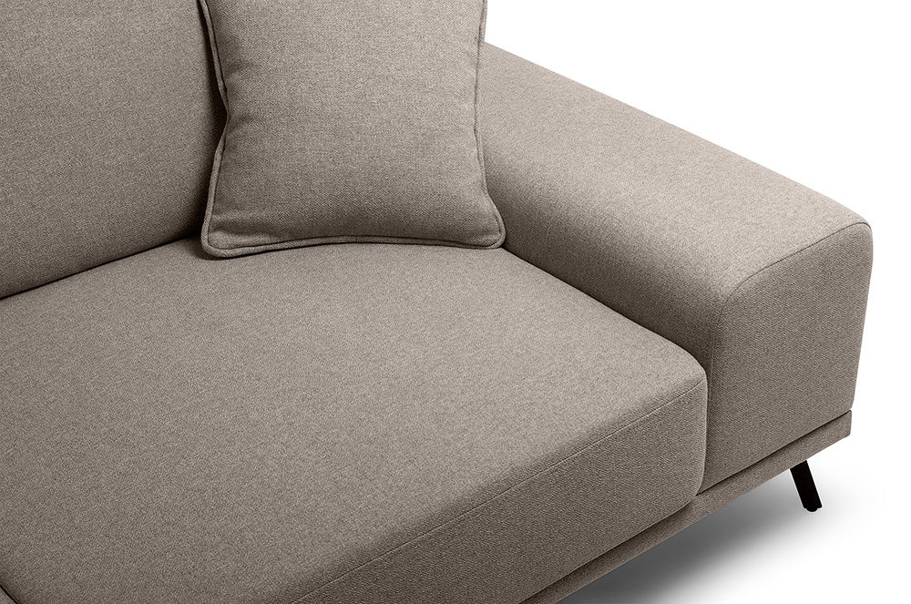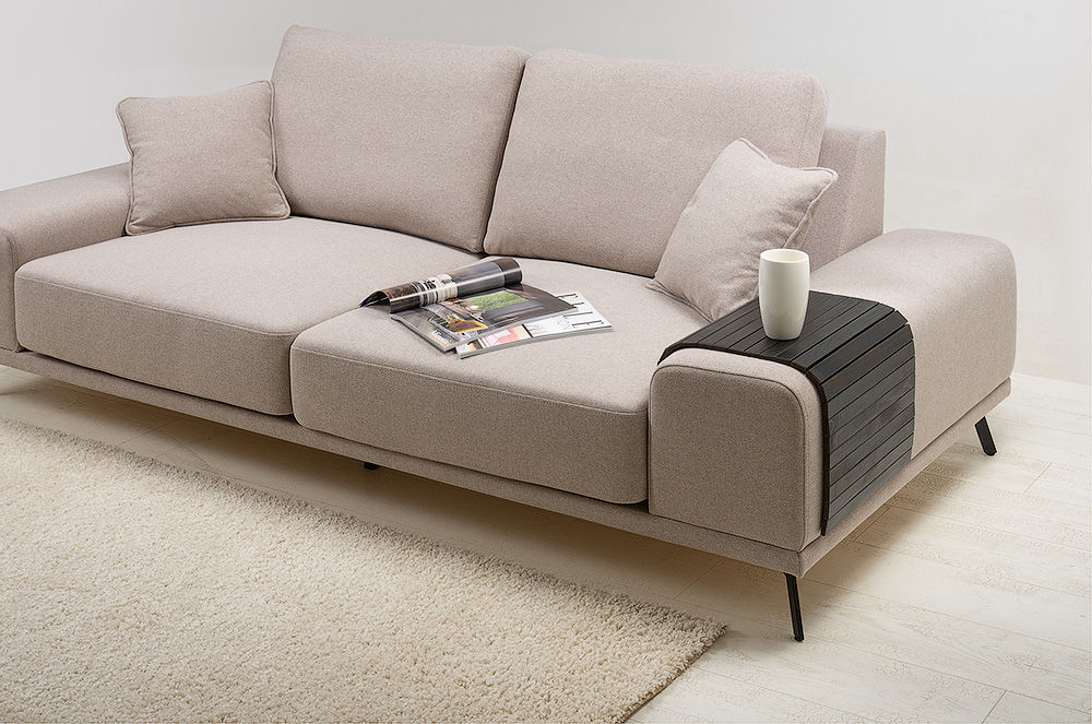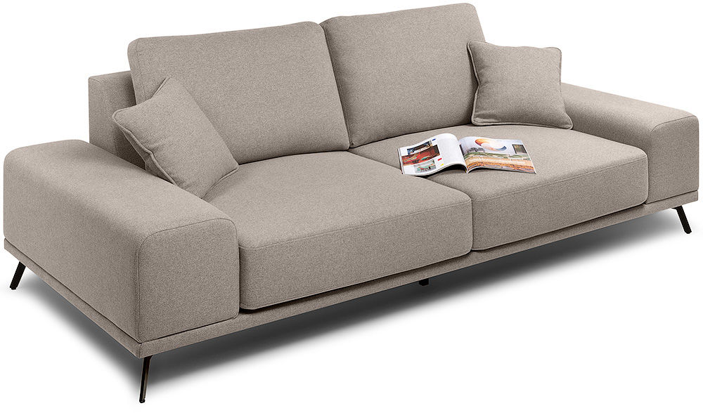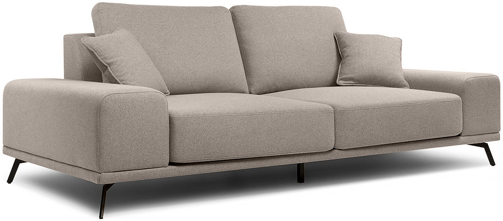 Стильный мягкий диван Рон с глубокой посадкой выступит в роли базового элемента гостиной или лаундж зоны около домашнего кинотеатра. На просторном глубоком сиденьи с широкими массивными подлокотниками комфортно разместится большая семья или компания друзей.