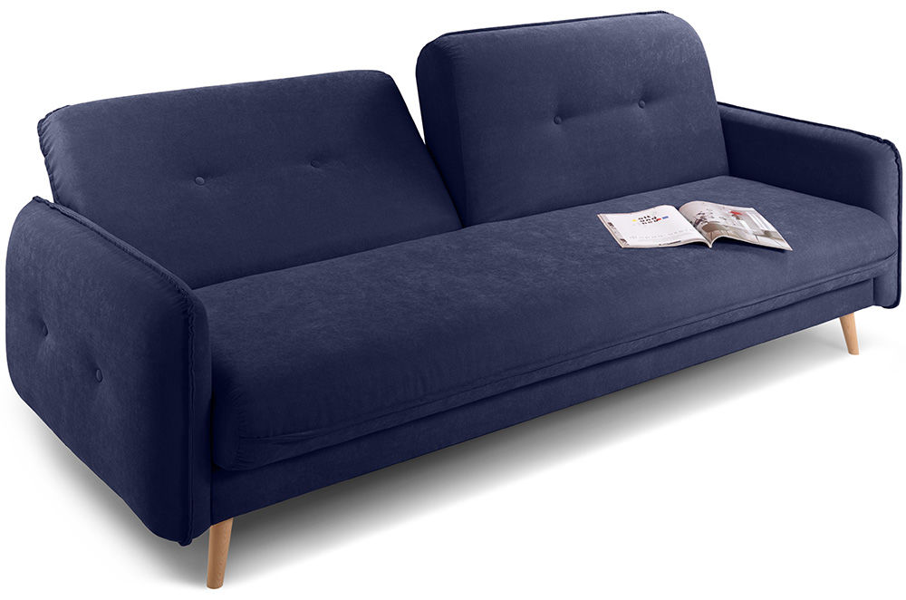 Функциональная модель Стаус подойдет тем, кто не привык выбирать между стильной и комфортной мебелью. Плавные скругленные формы и уютное декорирование пуговицами добавляют дивану особого шарма.