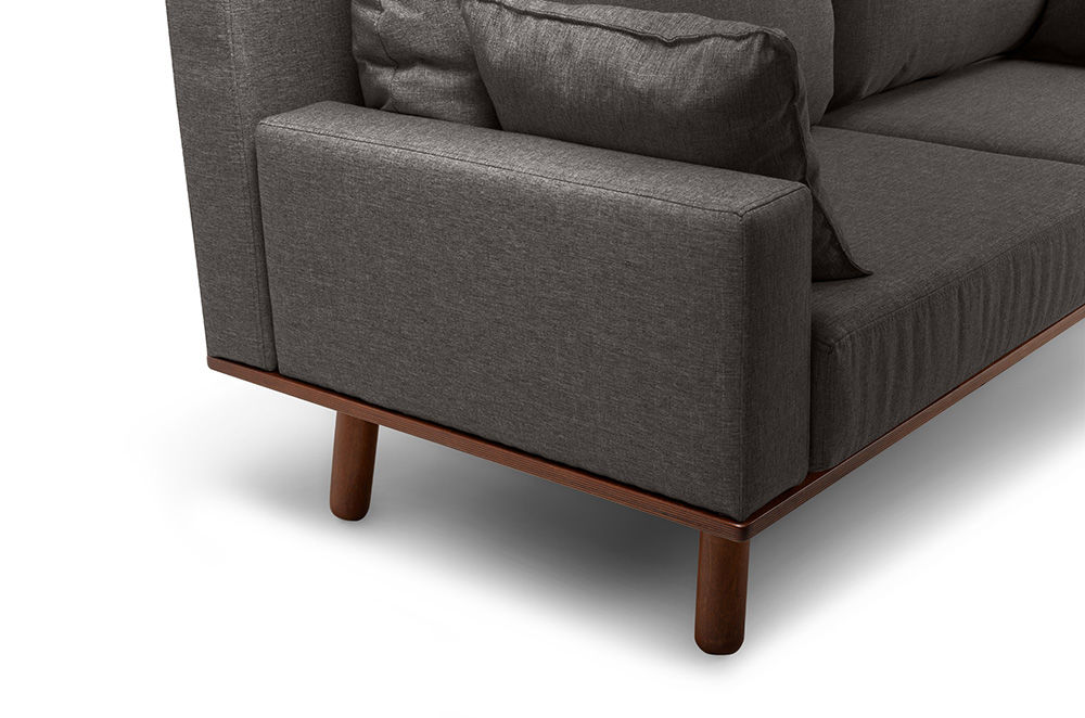 Дизайн дивана Миннесота соответствует современной эстетике: простой силуэт, геометричные линии, использование натуральной древесины. Обилие подушек сделает просмотр любимого фильма не только увлекательным, но и комфортным. Модель подойдет для домашней обстановки в стиле эко, а также для интерьера загородного дома.